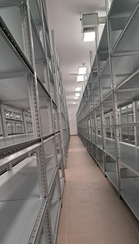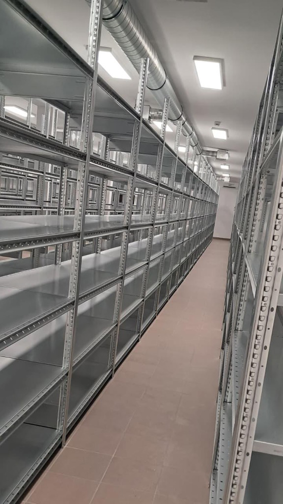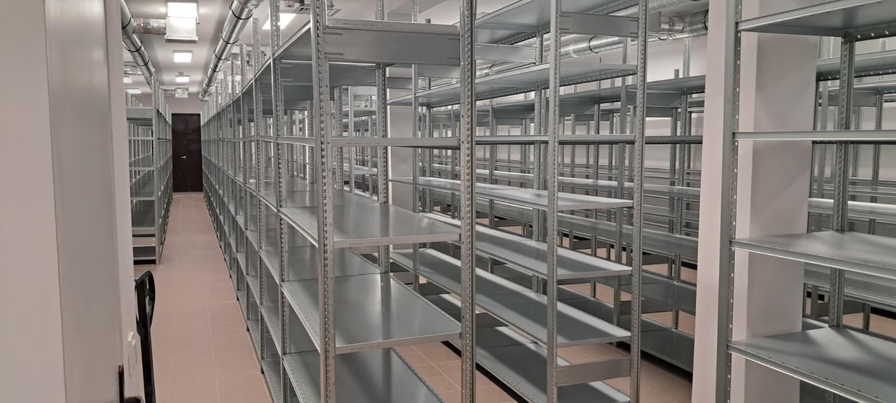 Dla Zakładu Karnego w Strzelcach Opolskich zrealizowaliśmy jeden z naszych największych projektów w zakresie systemów archiwizacyjnych. Wyzwanie polegało na maksymalnym wykorzystaniu dostępnej kubatury przy zachowaniu pełnej funkcjonalności archiwum. Wdrożyliśmy system regałów stacjonarnych o zróżnicowanej głębokości: jednostronne (300 mm) oraz dwustronne (600 mm). Skalę przedsięwzięcia najlepiej oddają liczby – łączna długość powierzchni archiwizacyjnej przekroczyła 1,6 kilometra. To rozwiązanie zapewnia bezpieczne i uporządkowane przechowywanie dokumentacji na dekady.